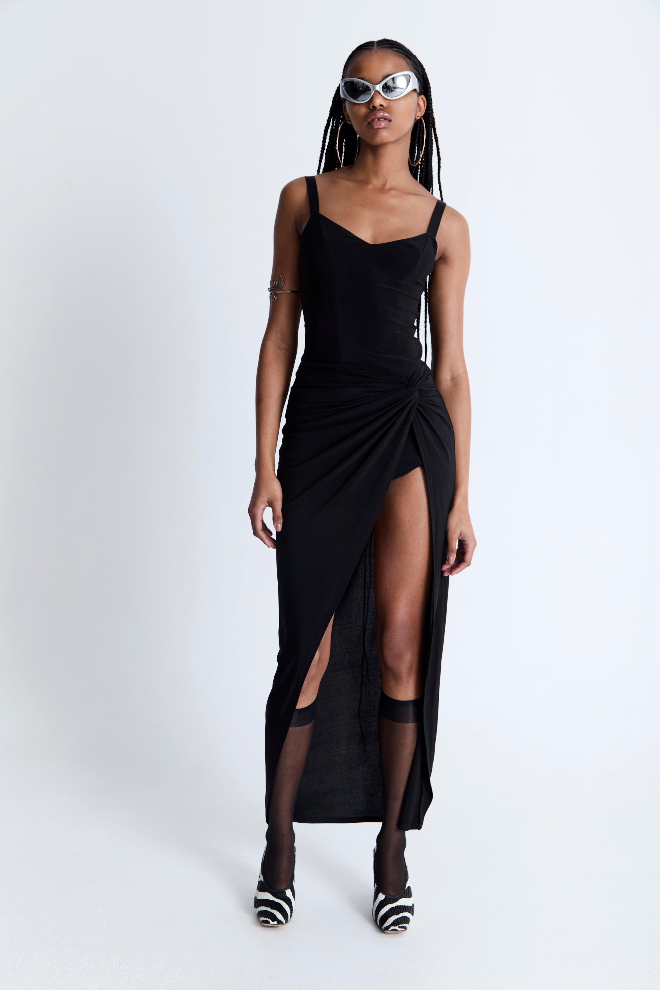 Fitted to perfection the heavy metal dress comes in two pieces; the mini dress and additional skirt to make two dresses in one. Fitted with heavy duty sporty elastic and leather lace up back.