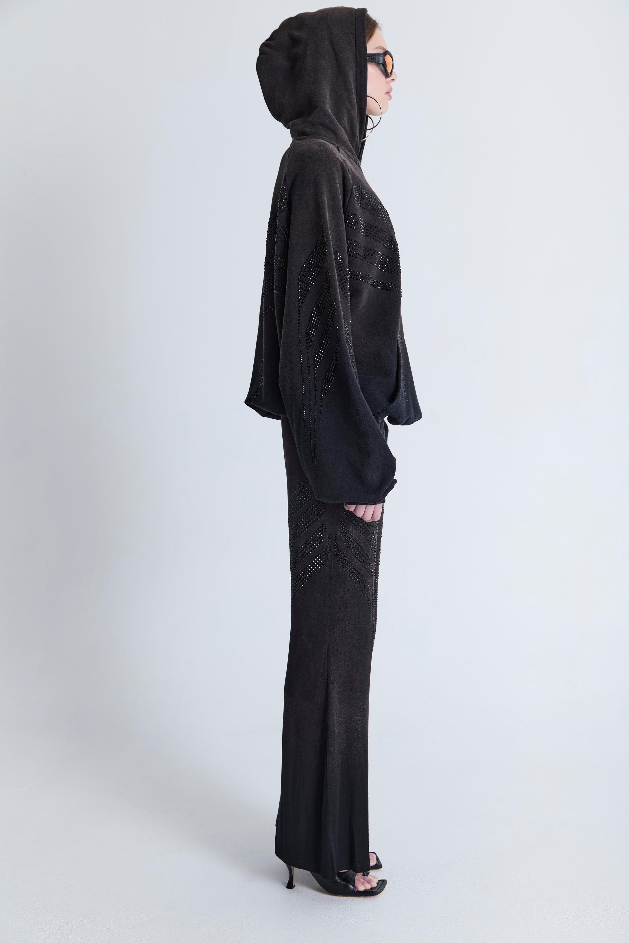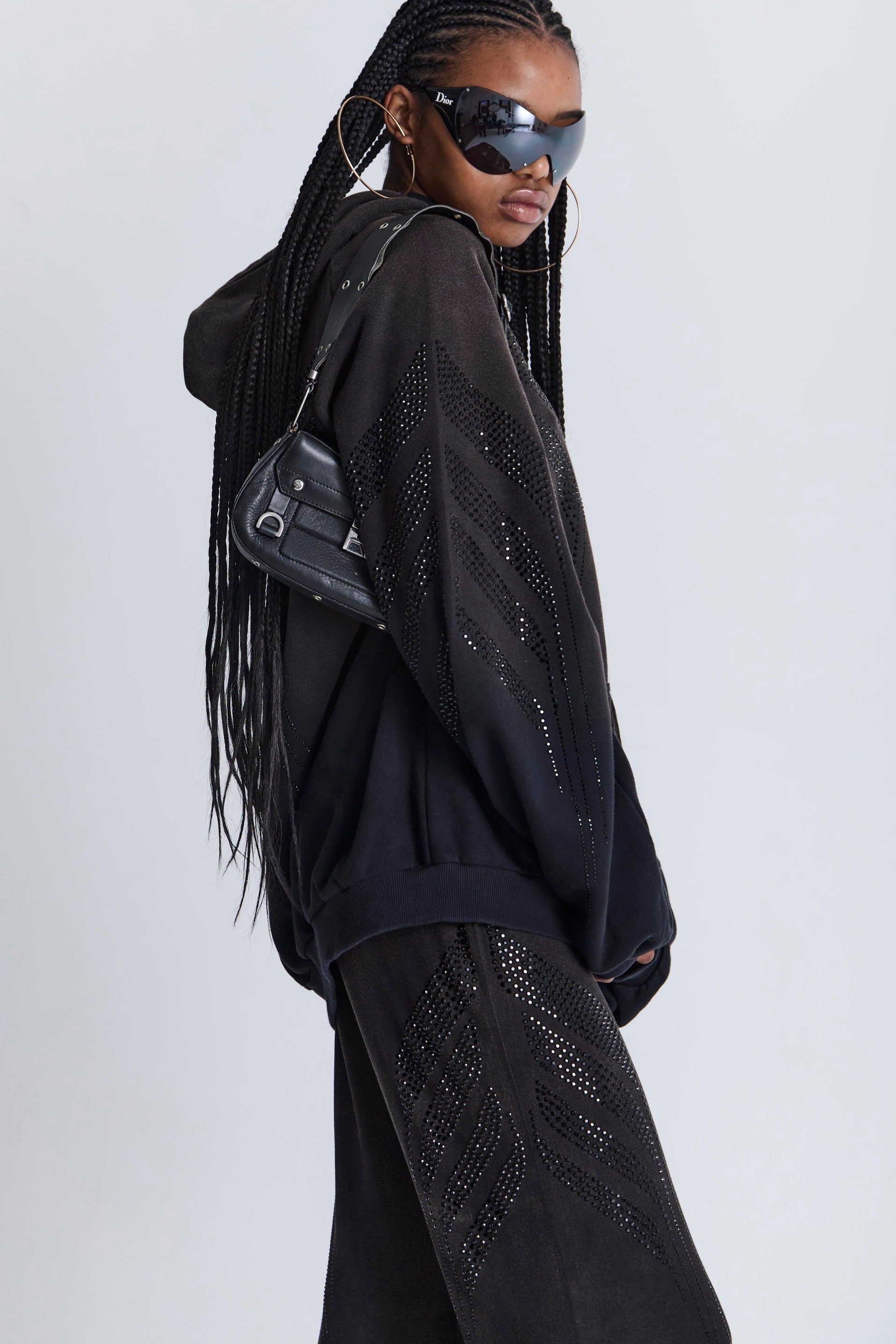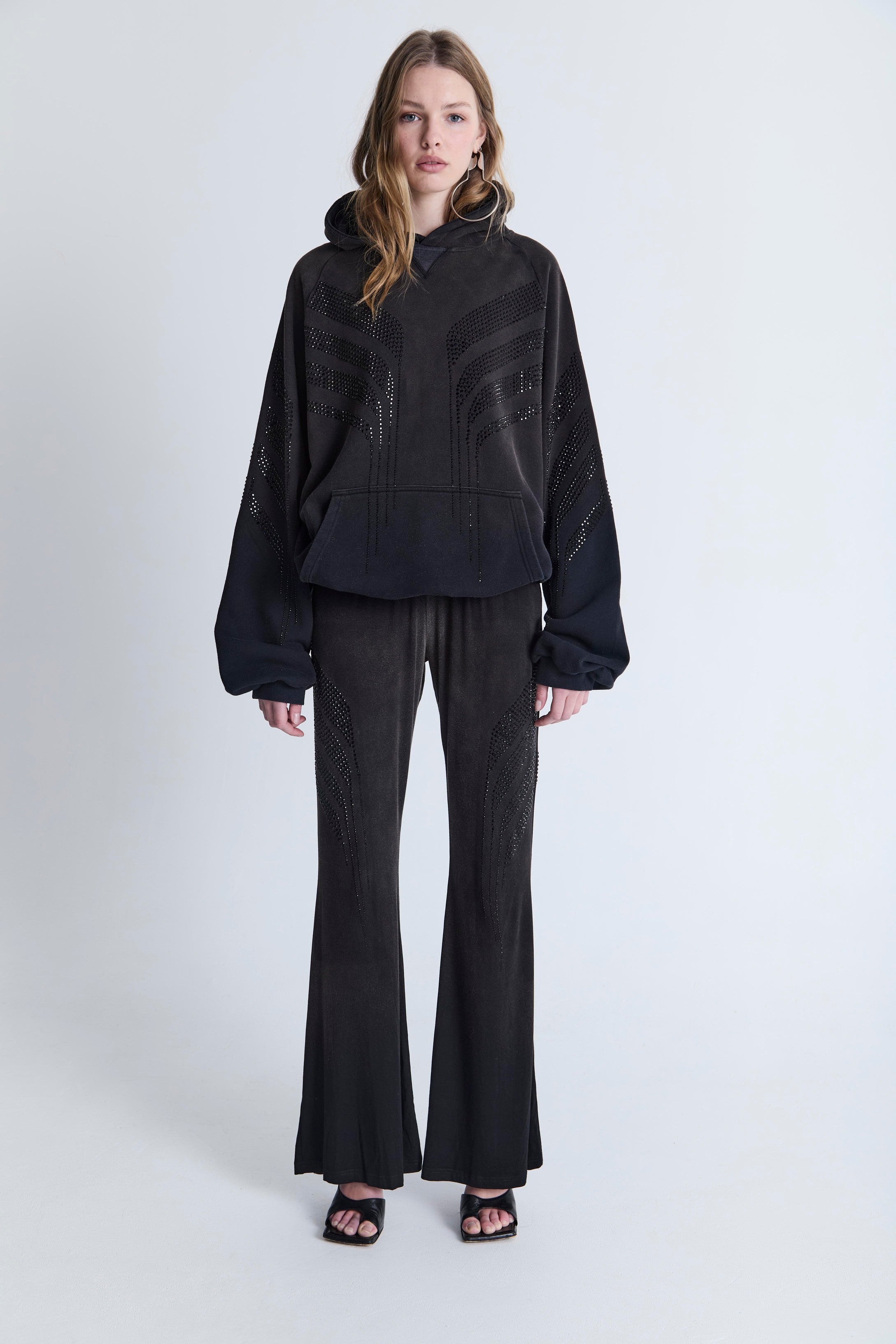 Lounge in the softest elastic waist flare pant. Designed to look elevated while feeling effortless, with rhinestone design. Match them to the Ex Boyfriend Hoodie.